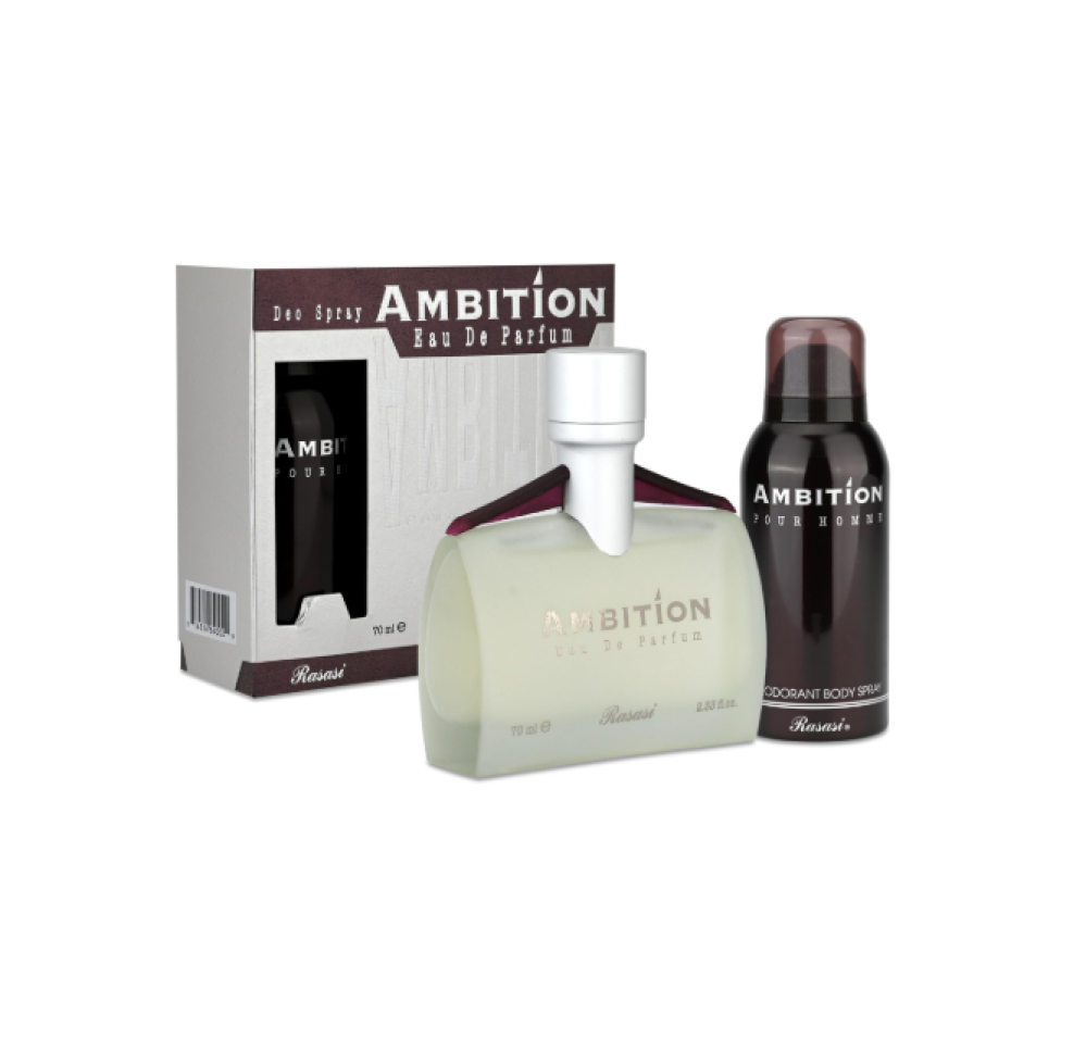 عطر امبيشن الرجالي من الرصاصي او دو بارفيوم 70 مل مع بخاخ 210 مل
